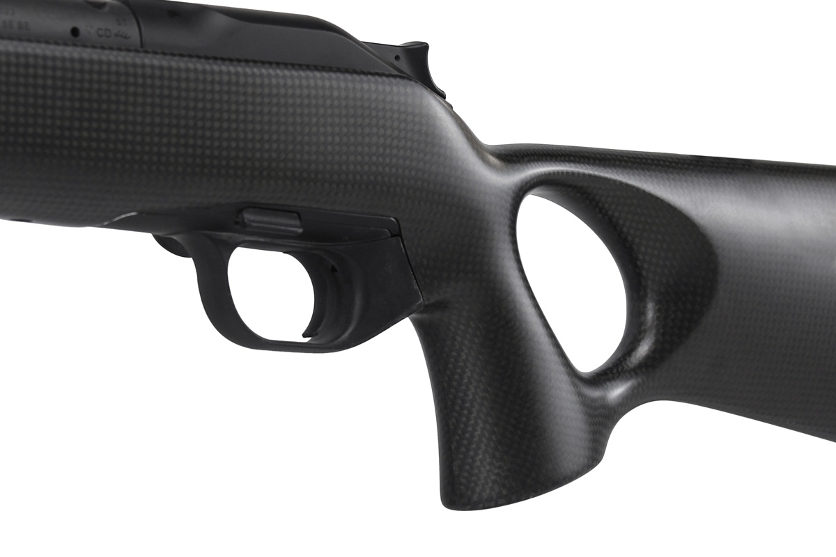 Carbon fibre stock suitable for Blaser R8 Professional Success. Thumbhole stock with straight construction makes this gunstock truly ambidextrous, and therefore suitable for right and left-handed shooters.