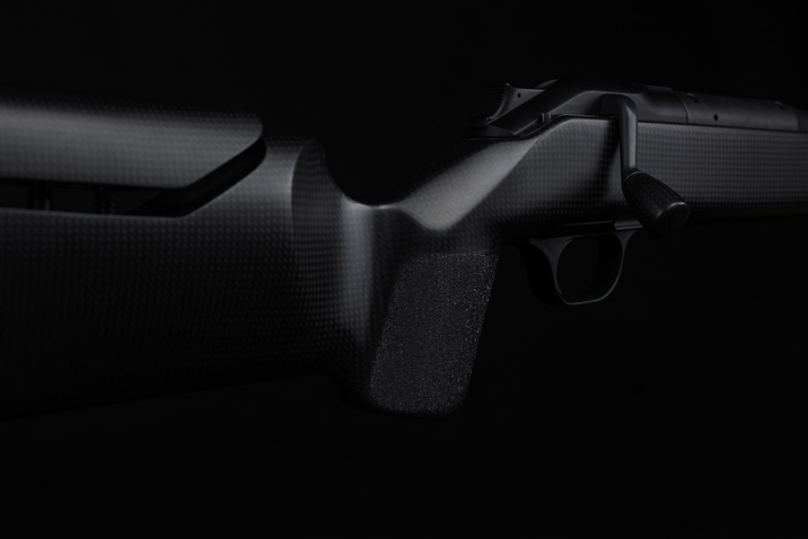 Carbon fibre gunstock suitable for Blaser R8 Professional. Ergonomically superior, with added texture for enhanced grip on the handle, combined with a side thumb shelf enabling you to have the perfect trigger hand position.